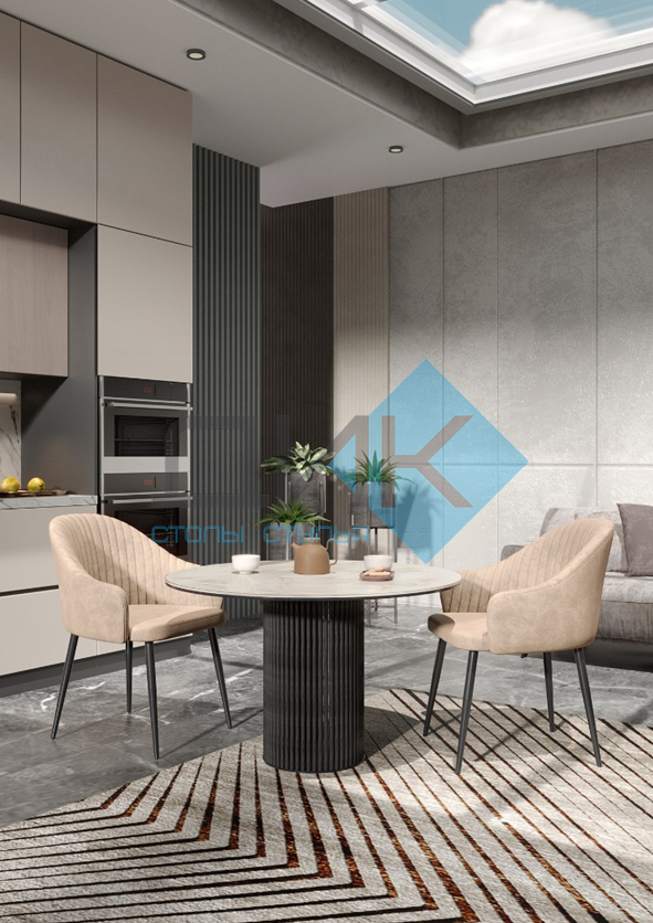 - Стол DikLine AKR120 со стульями 439 и 440. Лаконичный дизайн и утонченная текстура столешницы. Подходит для современных и скандинавских интерьеров.