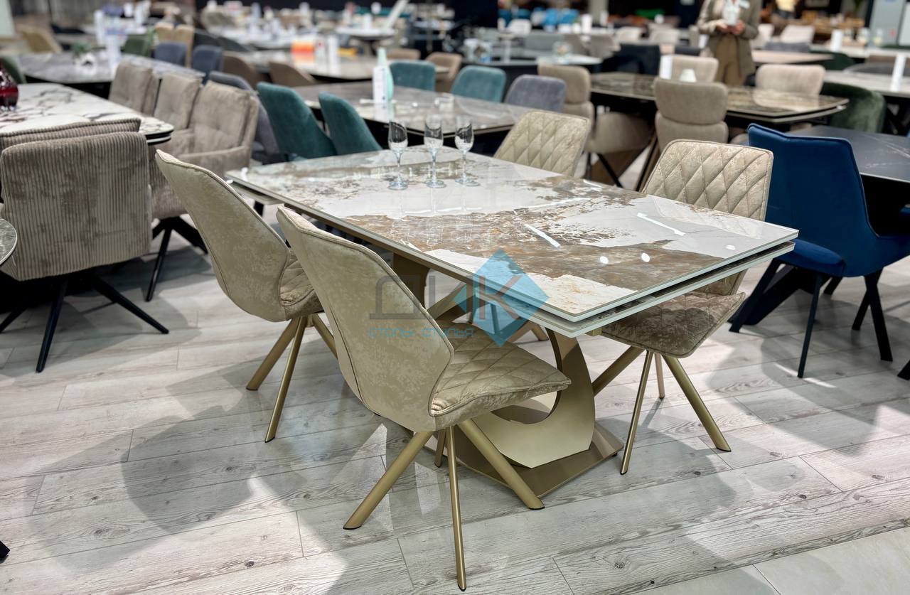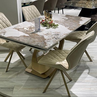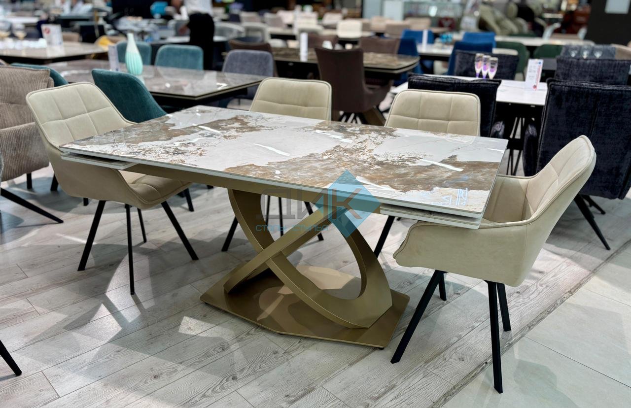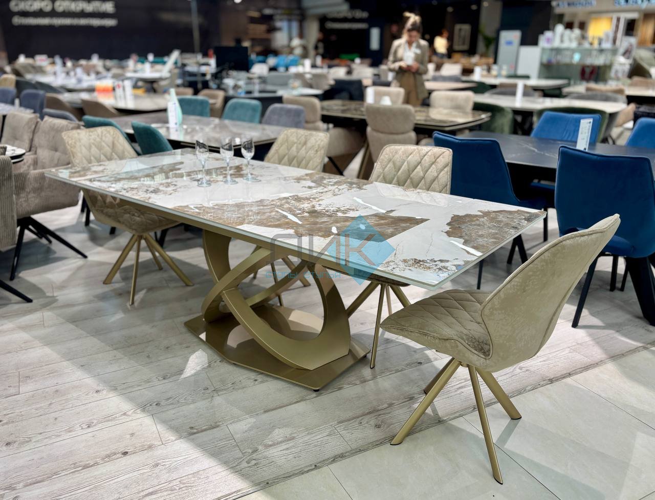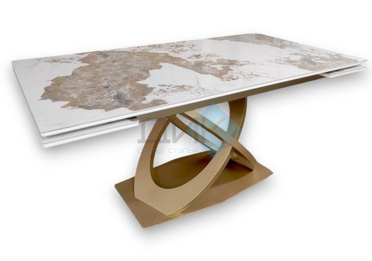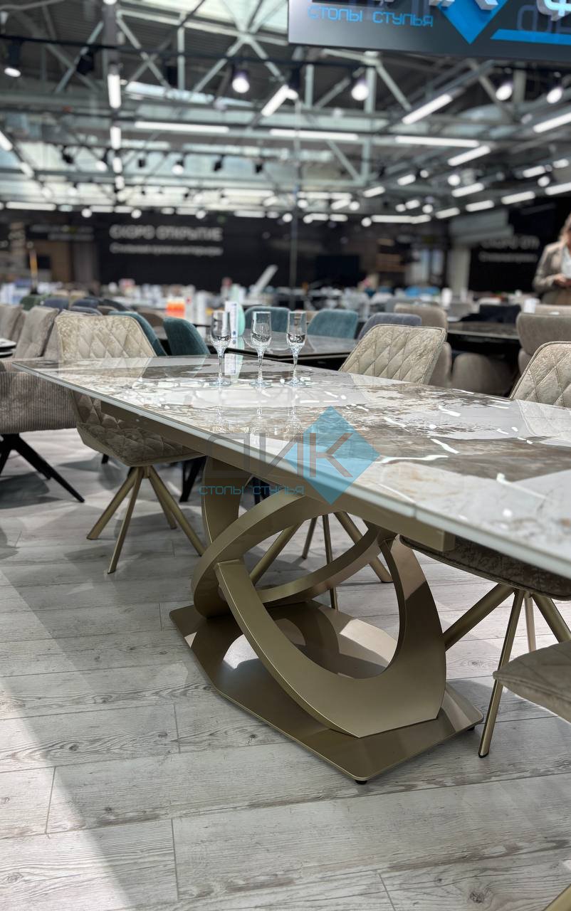 Стол на дизайнерской центральной опоре в цвете "под золото".