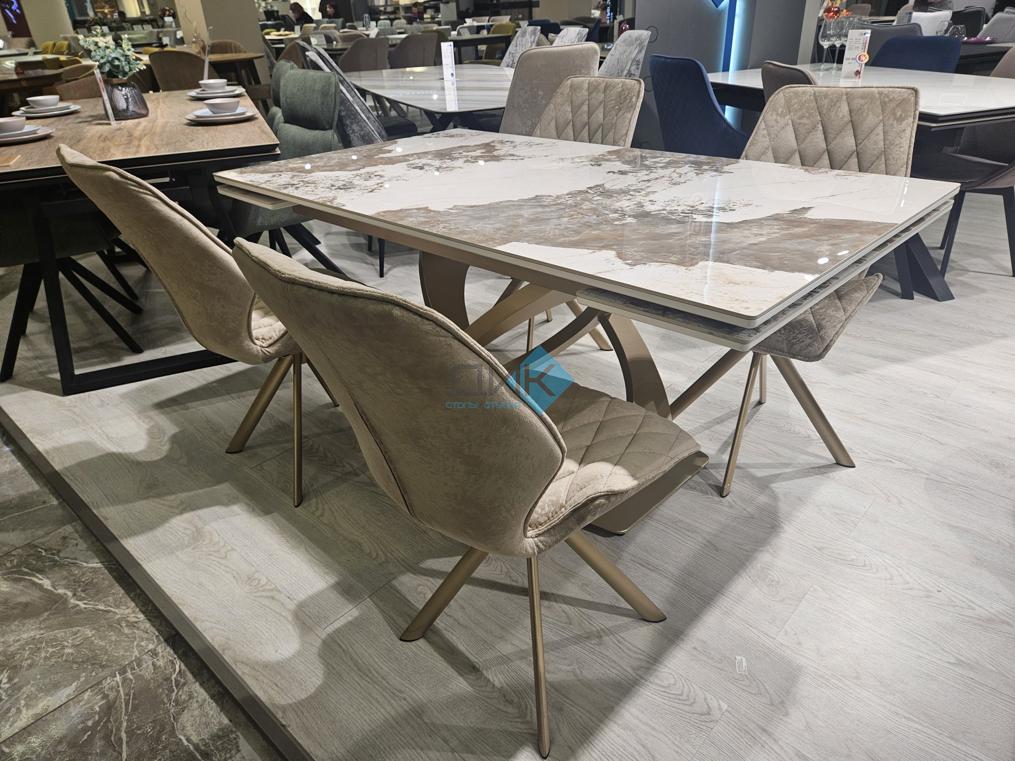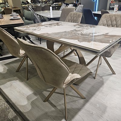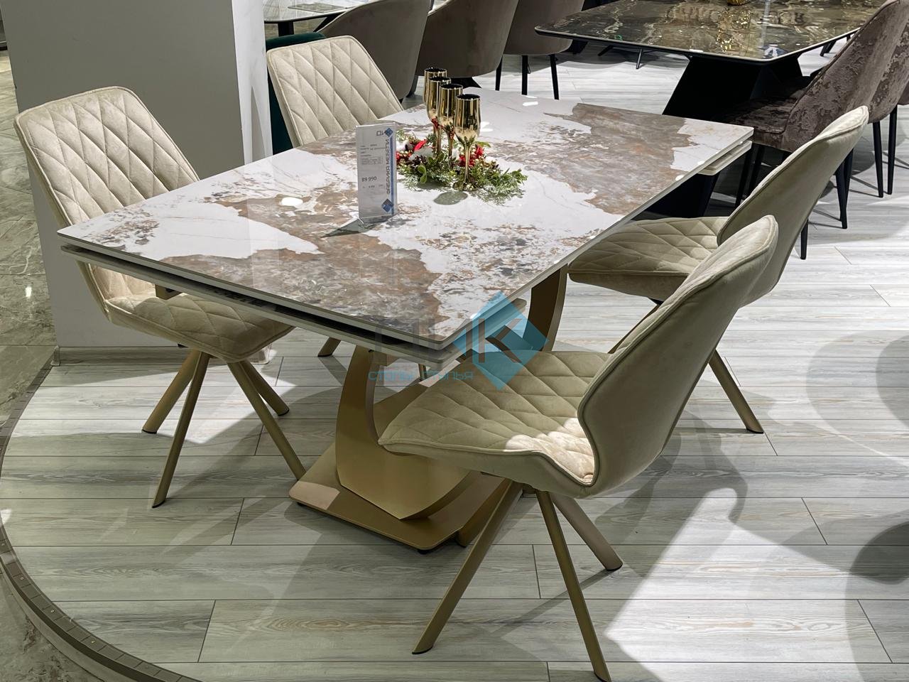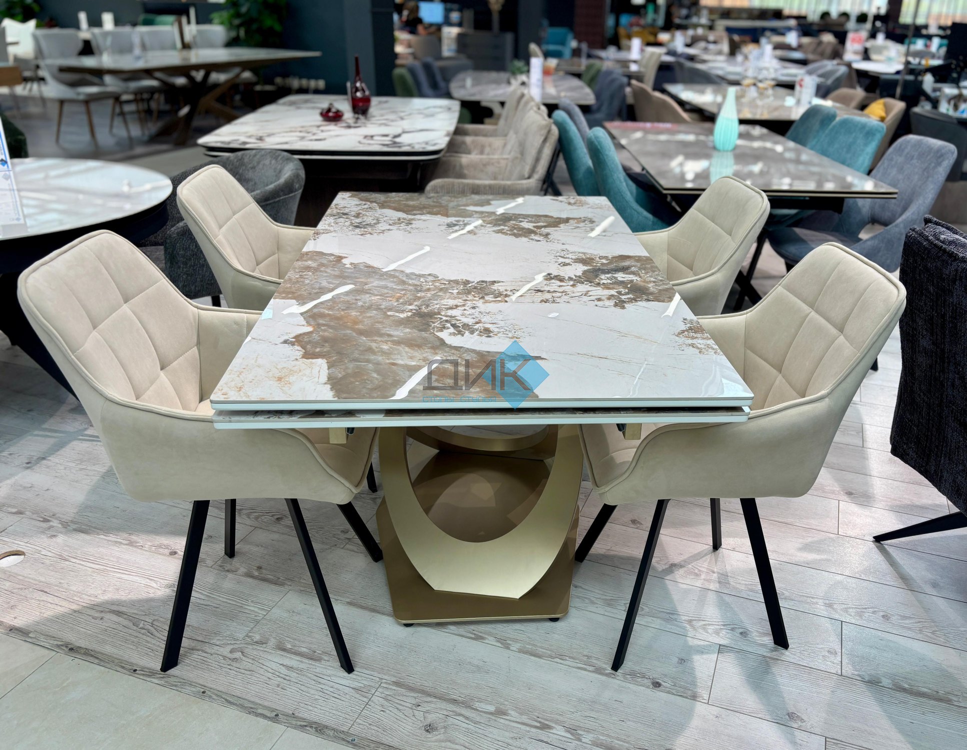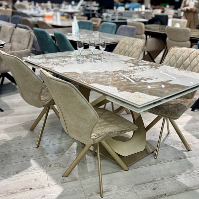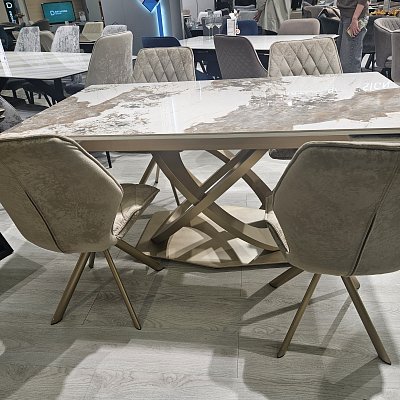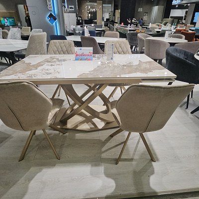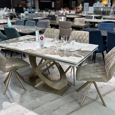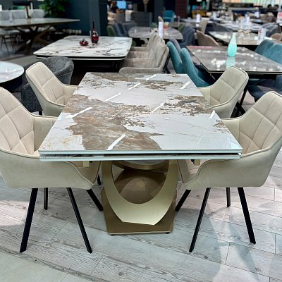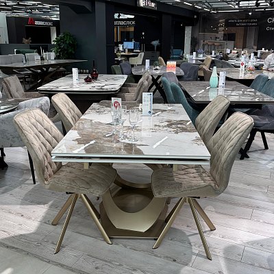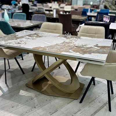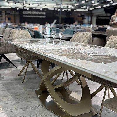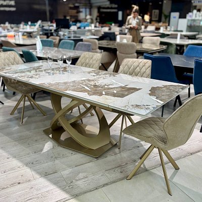 Стол на дизайнерской центральной опоре в цвете "под золото".