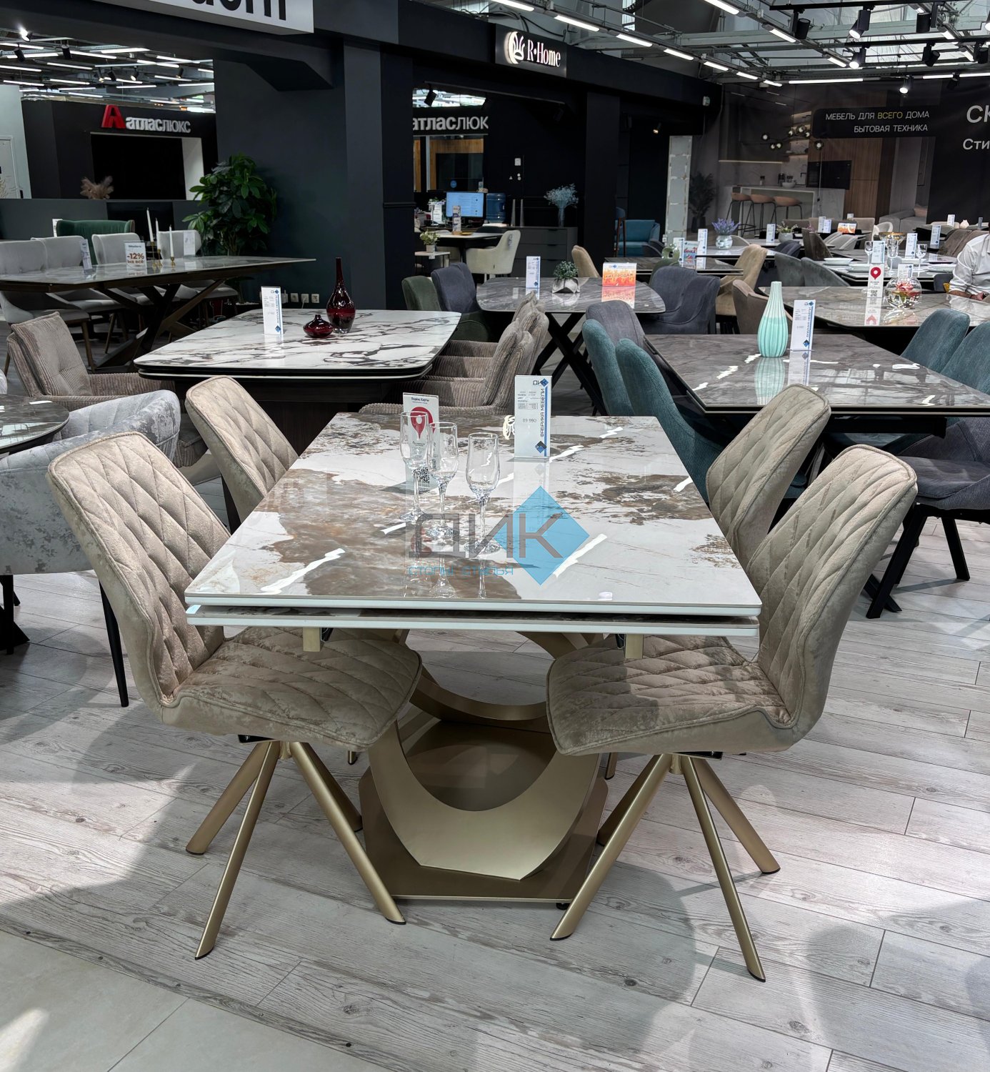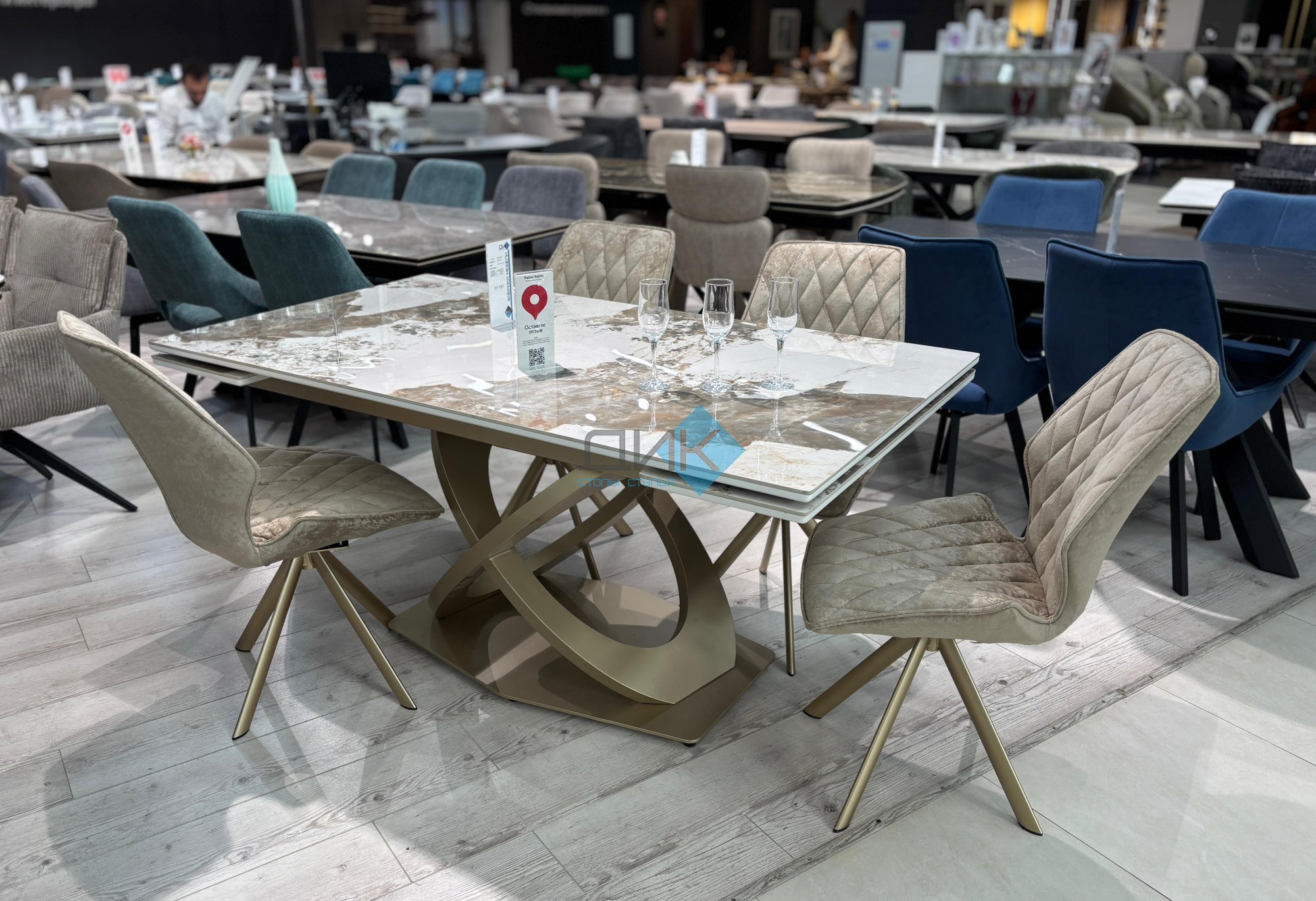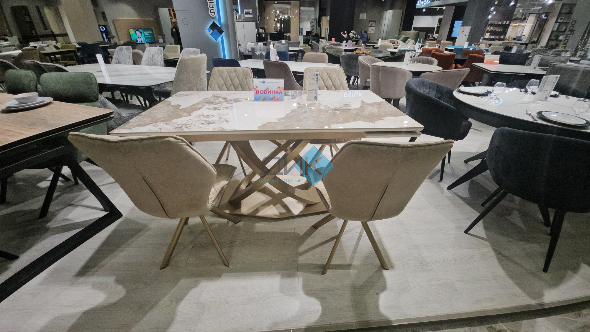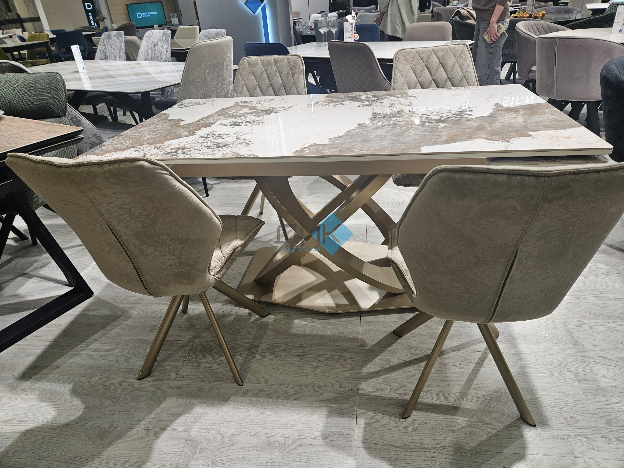 Стол на дизайнерской центральной опоре в цвете "под золото".