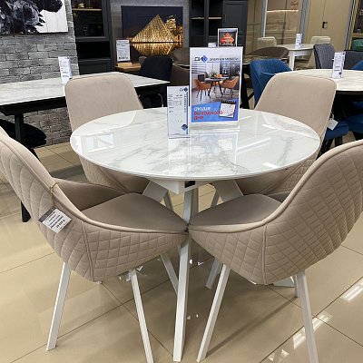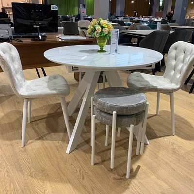 Красивый стол на оригинальной опоре! Благодаря конструкции ножек стола можно сесть с любой стороны.