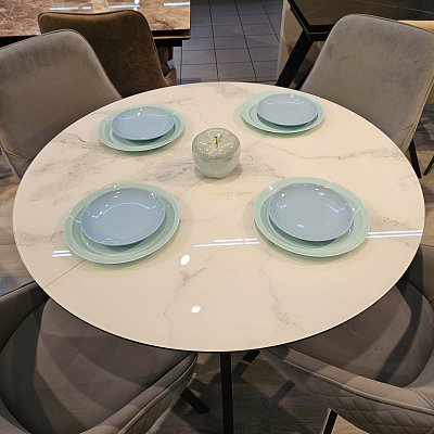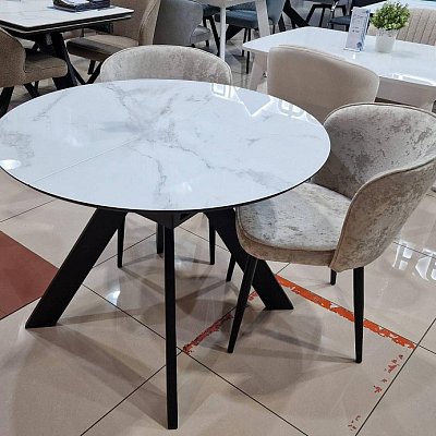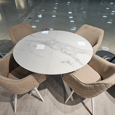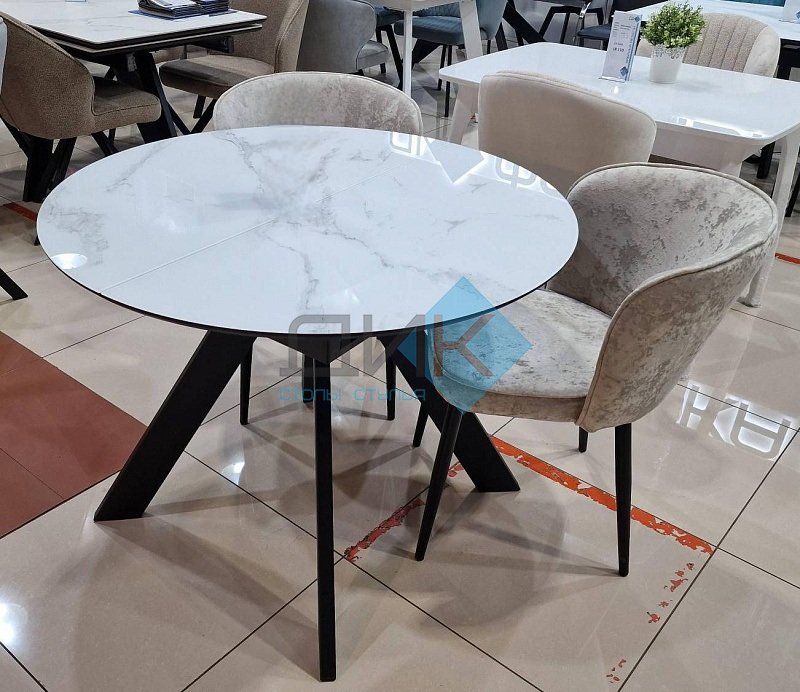 Габариты стола: 100х100 см, высота 77 см. Габариты столешницы в разложенном виде: 140х100 см.