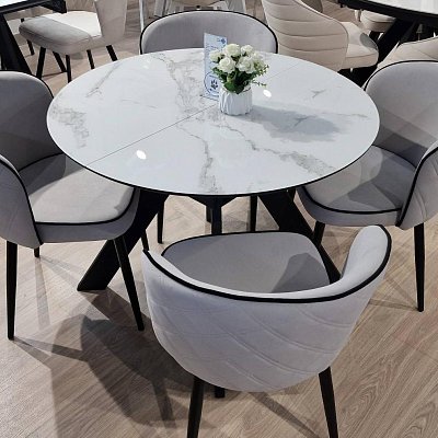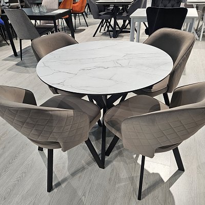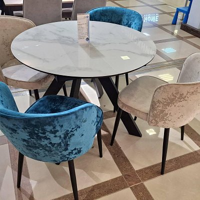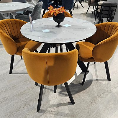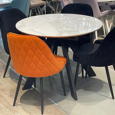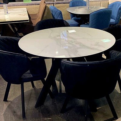 Красивый стол на оригинальной опоре! Благодаря конструкции ножек стола можно сесть с любой стороны.