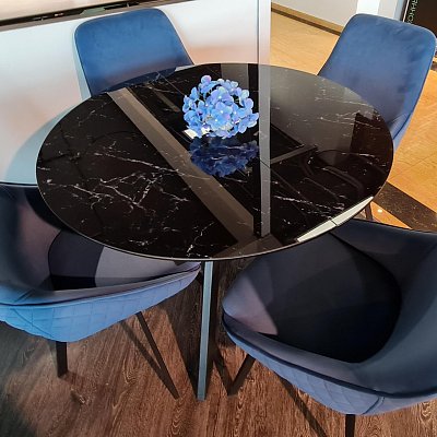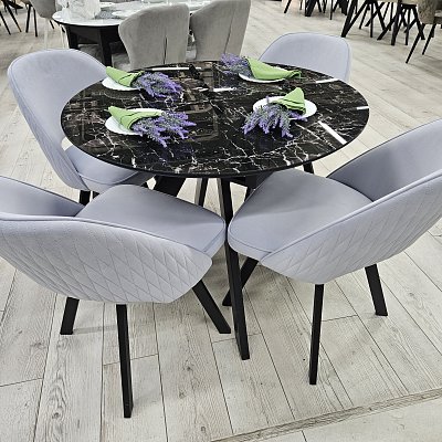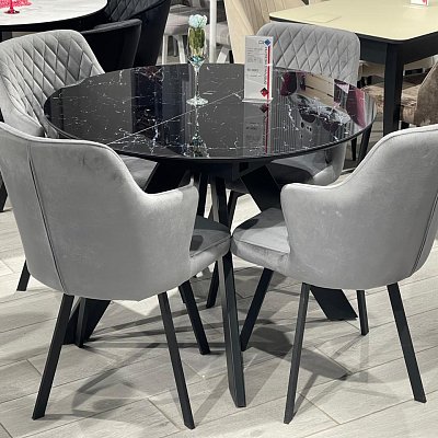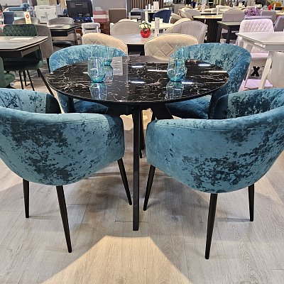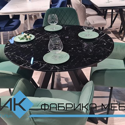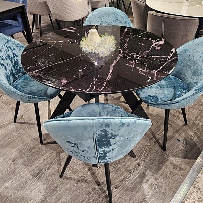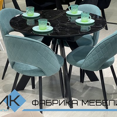 Красивый стол на оригинальной опоре! Благодаря конструкции ножек стола можно сесть с любой стороны.
