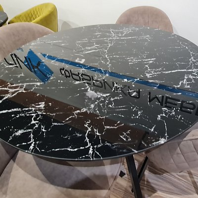 Столешница выполнена из стекла с фотопечатью (4 мм). Подложка МДФ - 16 мм.