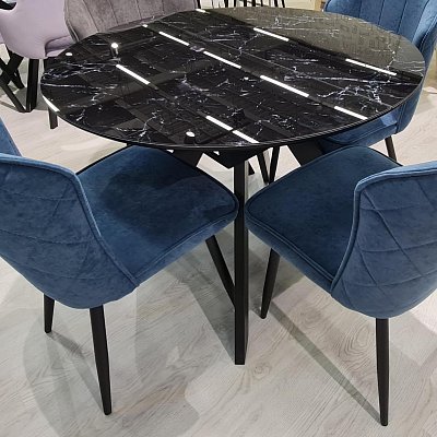 Габариты стола: 100х100 см, высота 77 см. Габариты столешницы в разложенном виде: 140х100 см.