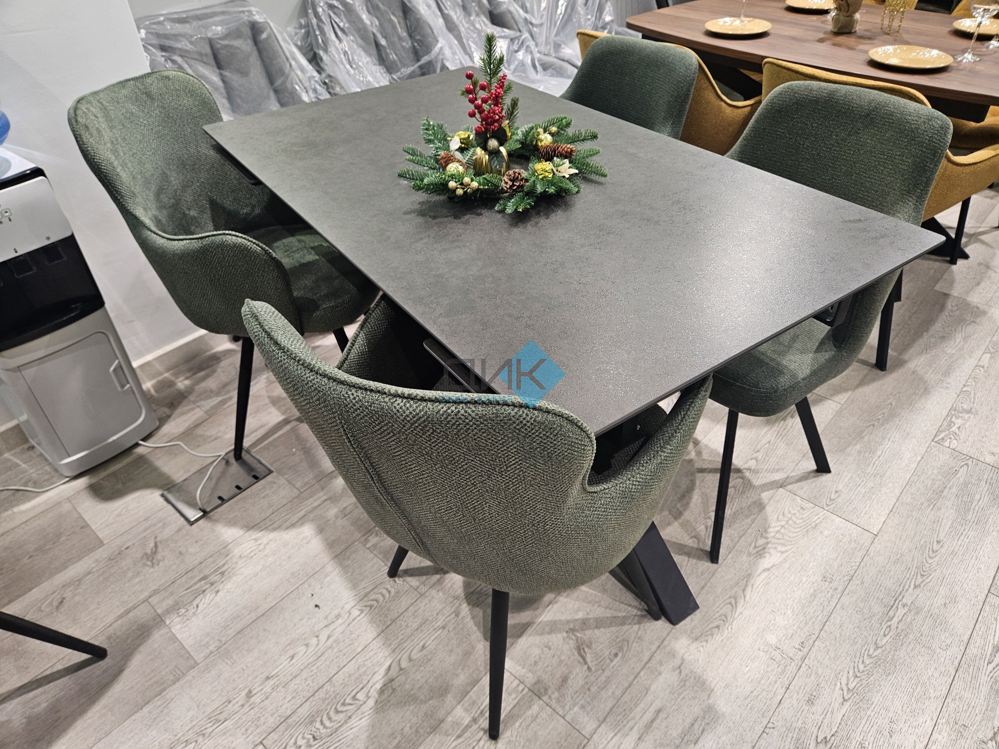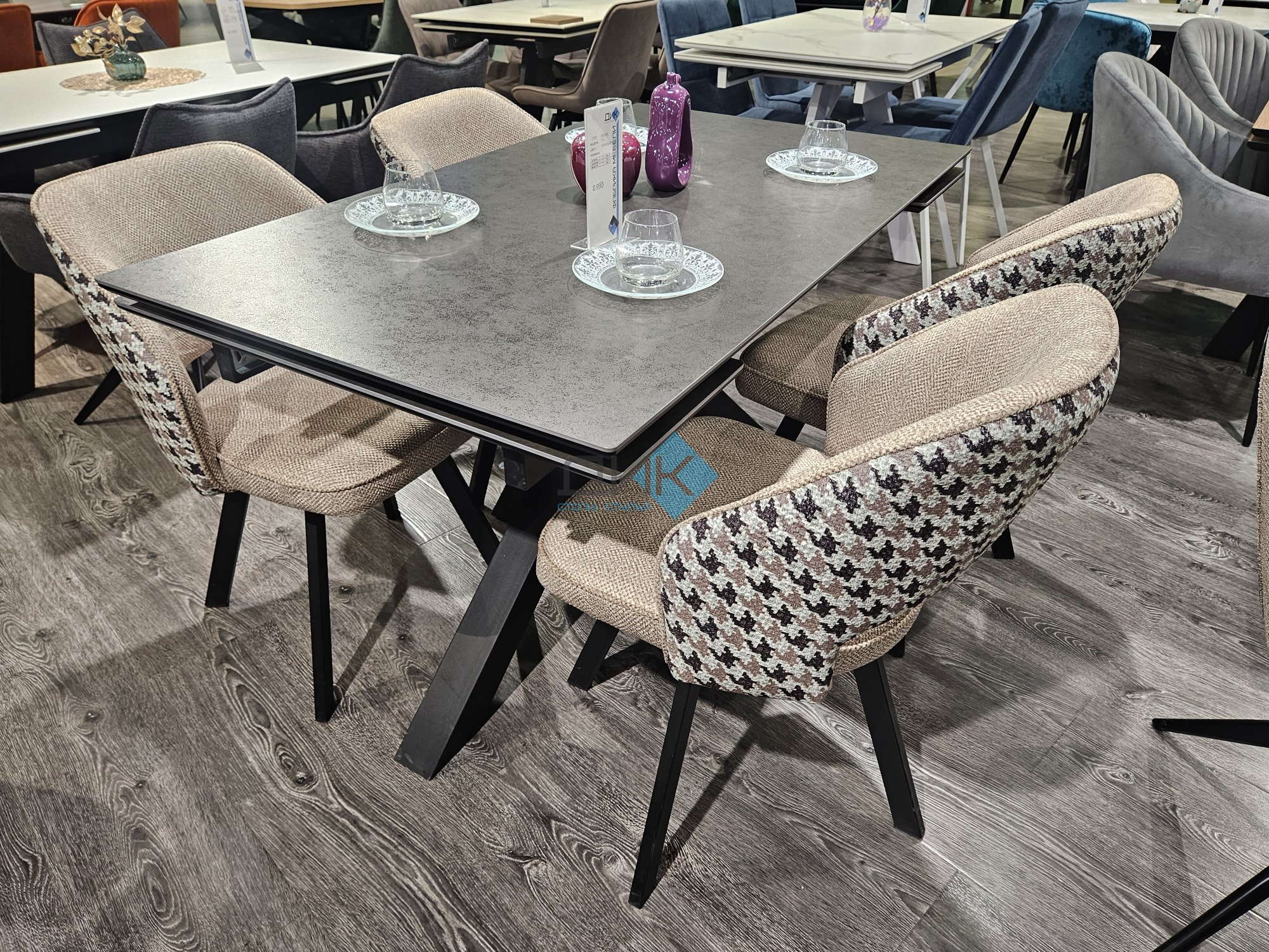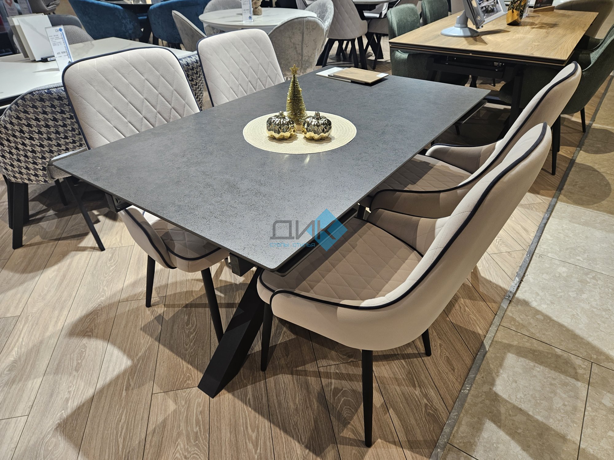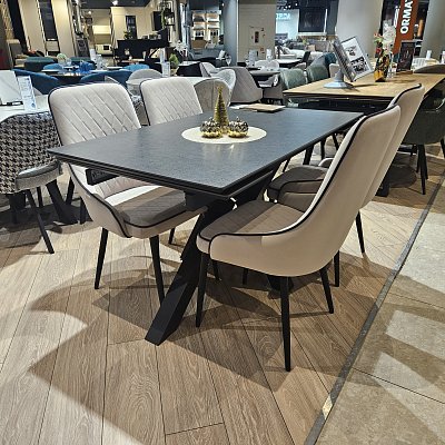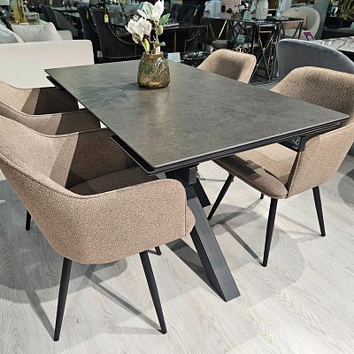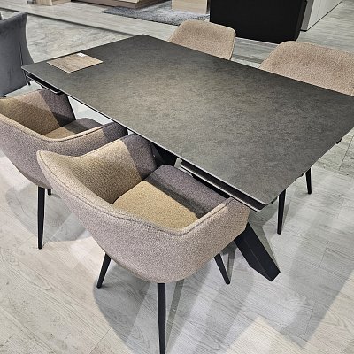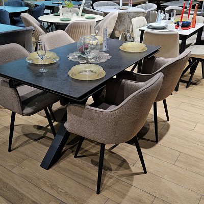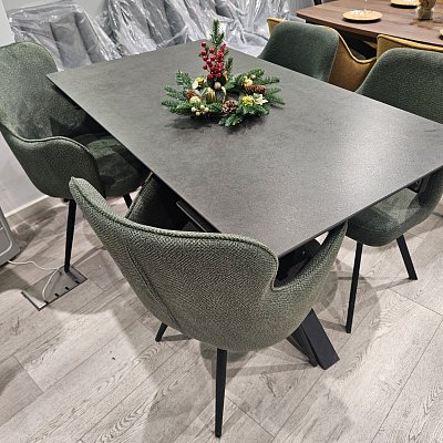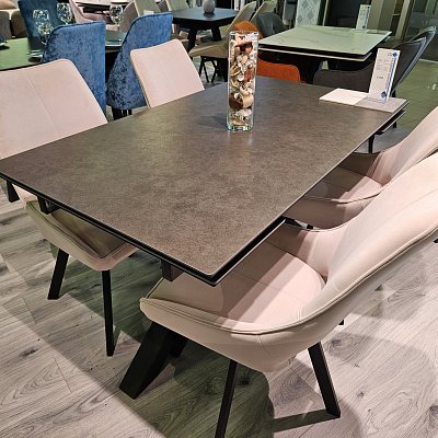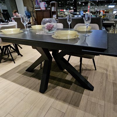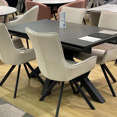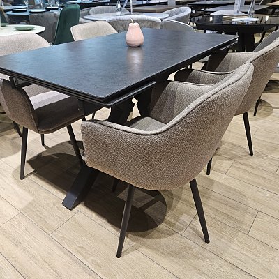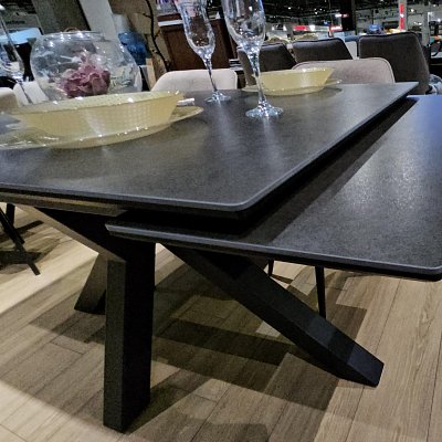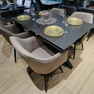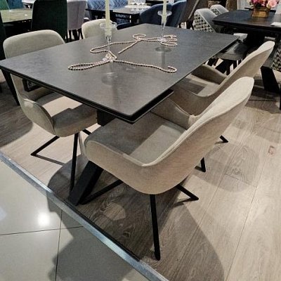 Стол с керамической столешницей - смотрится элегантно за счет тонких линий в конструкции подстолья и столешницы. Данная модель очень устойчива благодаря конструкции опор.