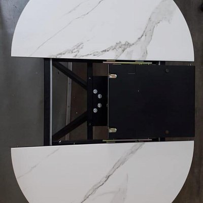 Подстолье: опоры металлические. Механизм раскладки - синхронный легкого скольжения, вставка - бабочка с керамикой (полуавтомат) 40 см.