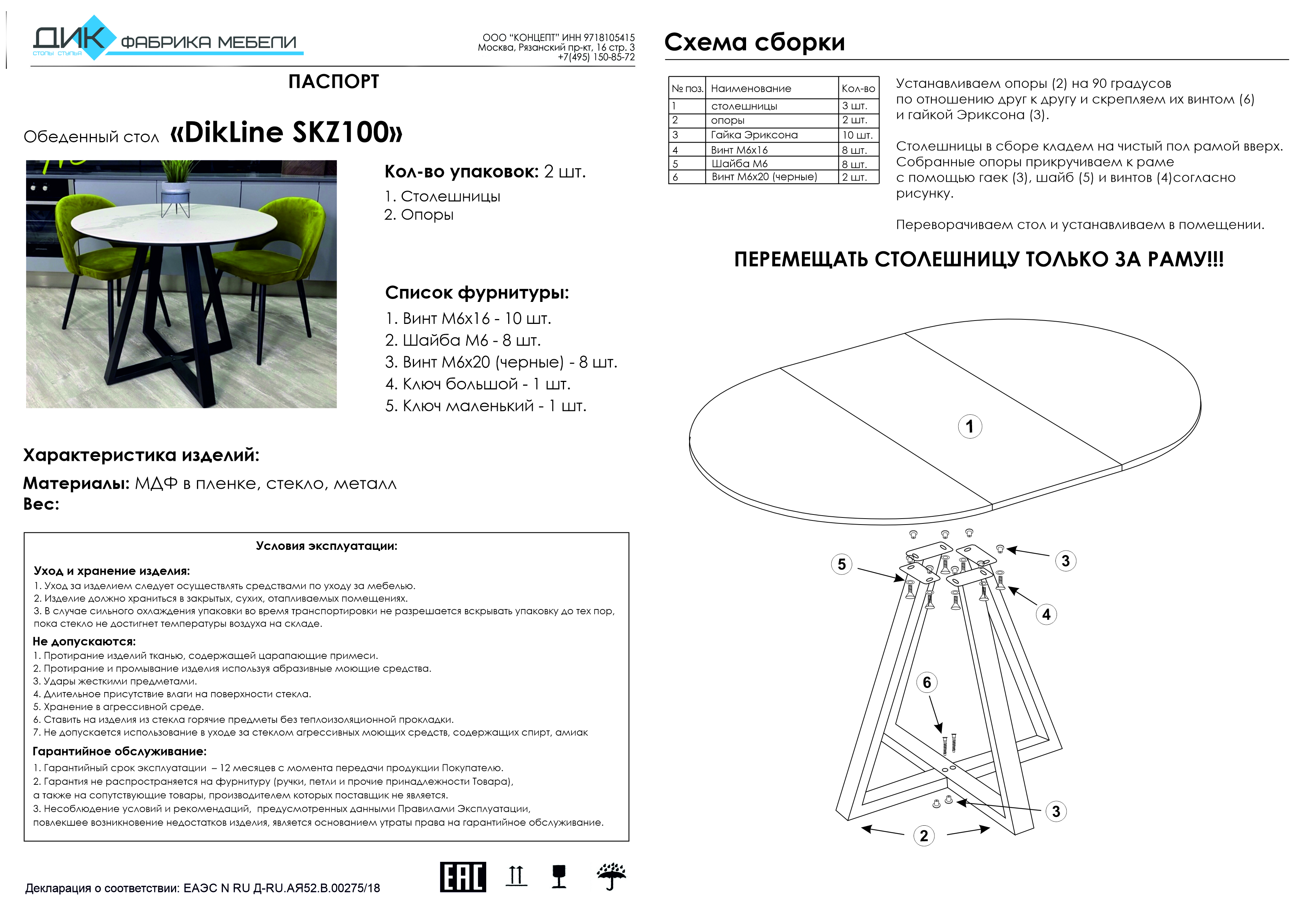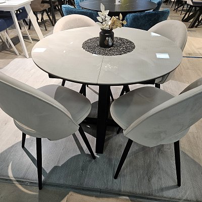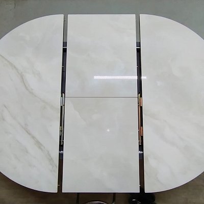 Столешница выполнена из: керамика глянцевая (5,6 мм) +МДФ (22 мм). Рама металлическая, крашенная. Подстолье: опоры металлические.