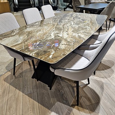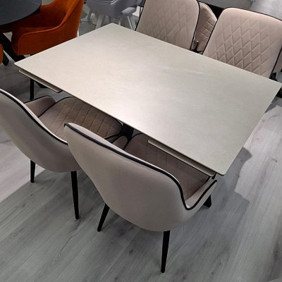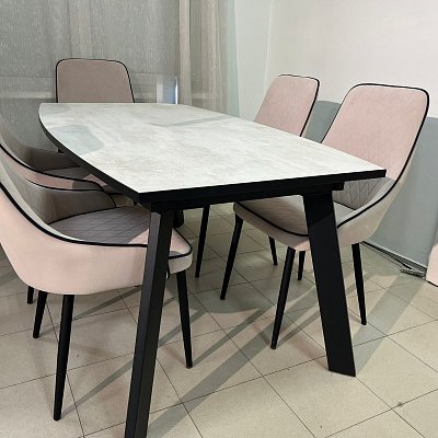 Сиденье и спинка обтянуты чехлами из ткани микровелюр. Сиденье стула выполнено из гнутоклеевой фанеры + ППУ.