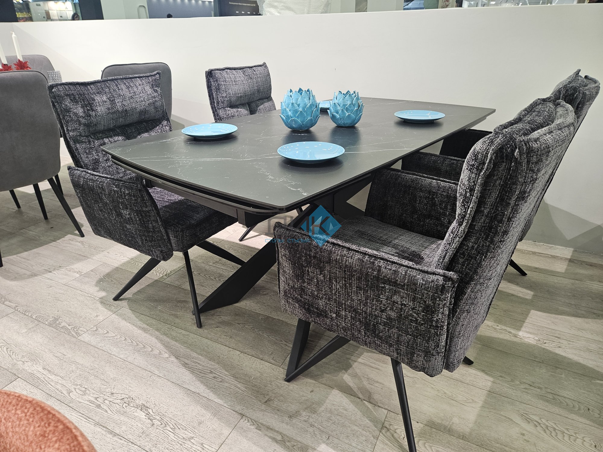 Обивка - шенилл на флисе. Флисовая подложка дает этому шенилу весомую плотность 440 г/м2, а ее износостойкость составляет более 100 тысяч циклов по Мартиндейлу. Легко чистится влажной салфеткой из микрофибры, более тяжелые загрязнения можно удалить любыми пенообразующими неагрессивными средствами. Среди других достоинств шенилла то, что материал не мнется, не садится при намокании, не теряет форму, хорошо поддается окрашиванию и держит цвет, не притягивает пыль, устойчив к истиранию, экологичный, гипоаллергенный и приятный на ощупь. Ткань не очень любит прямой солнечный свет и системы отопления — это может привести к деформации.