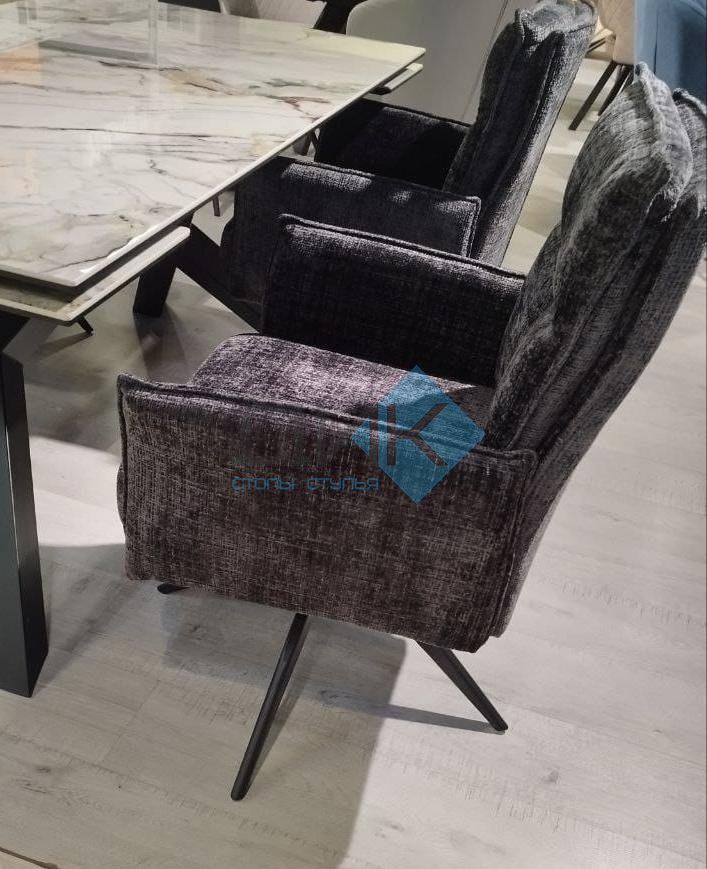 Сиденье, спинка и подлокотники выполнены на металлическом каркасе. Сиденье фанера 15 мм.